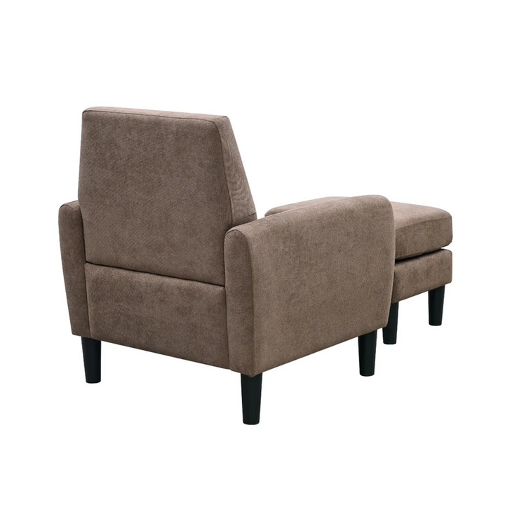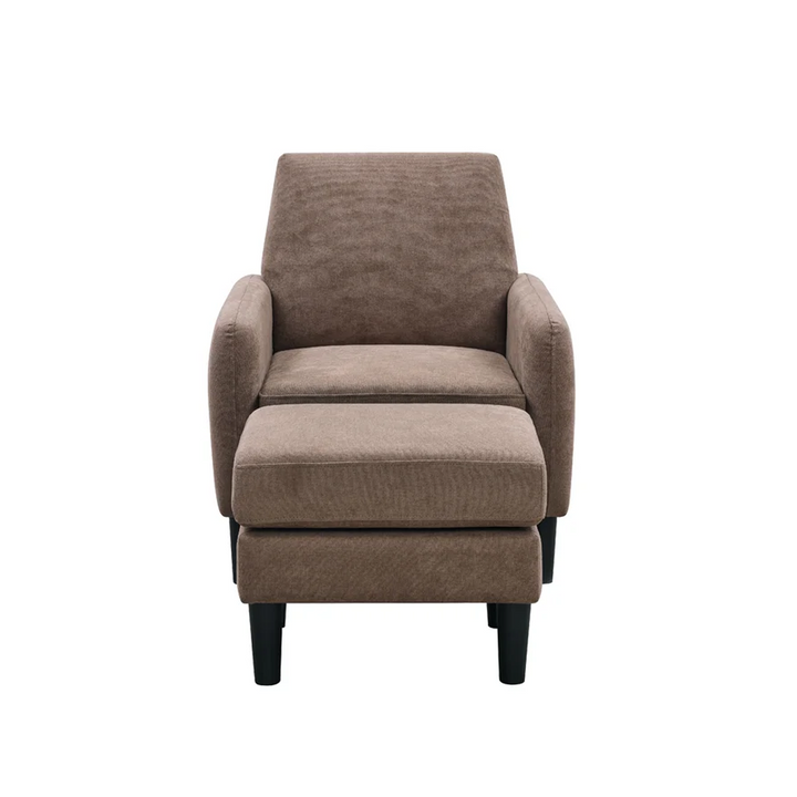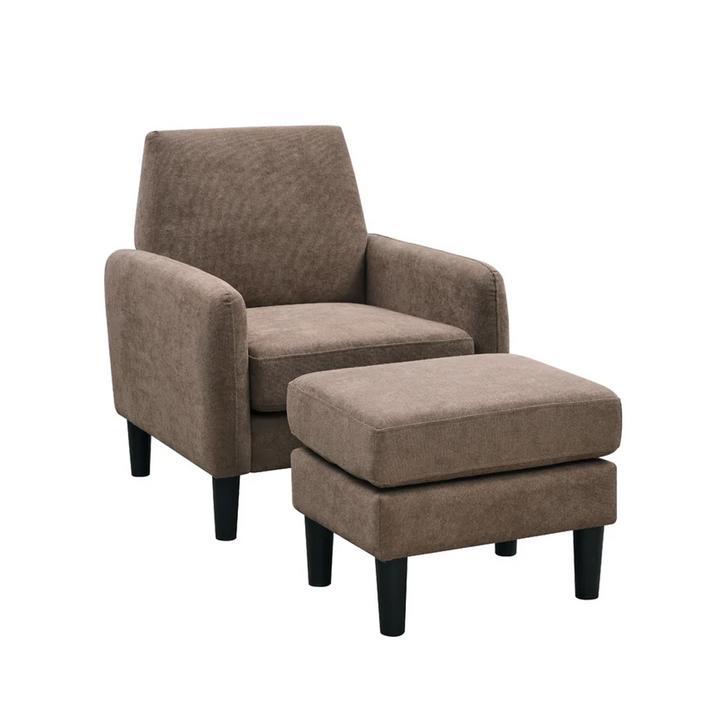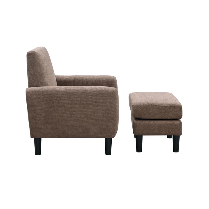 This armchair and ottoman set creates an ideal reading nook with a sleek, modern look. The chair is crafted with a kiln-dried engineered wood frame that sits on resin cylindrical legs with a dark finish.