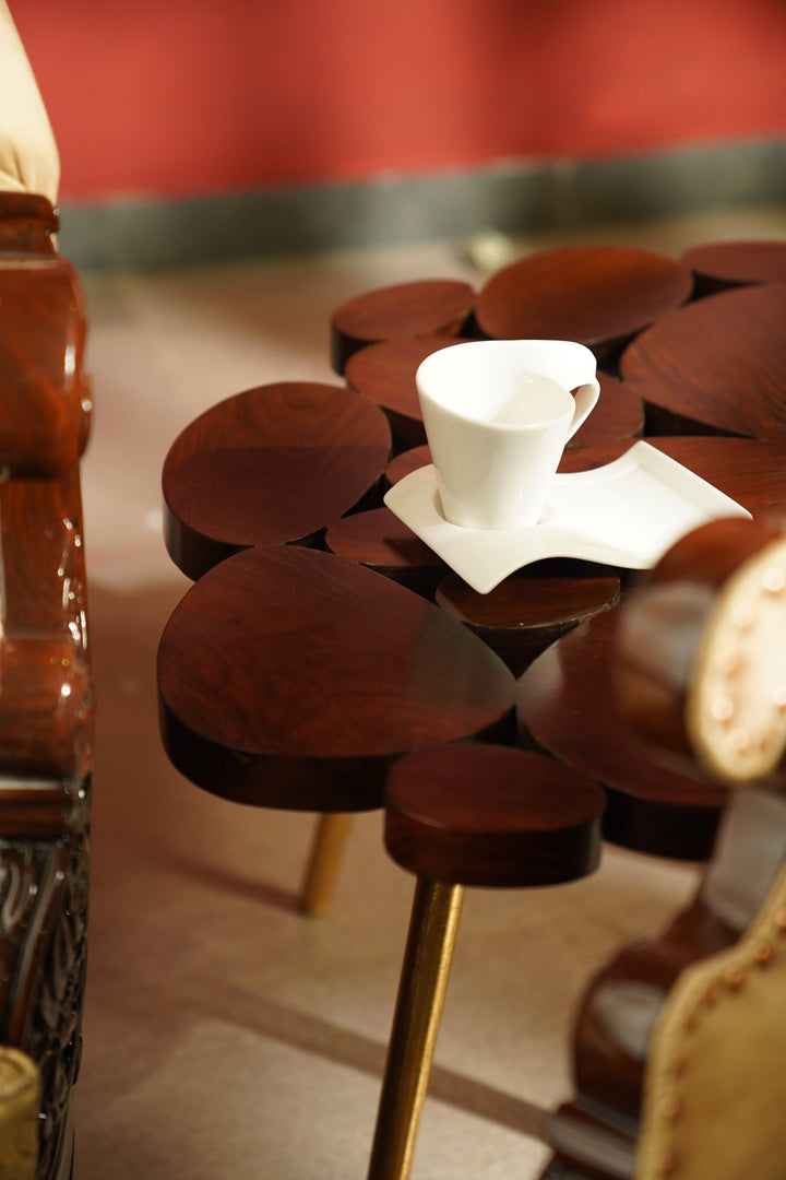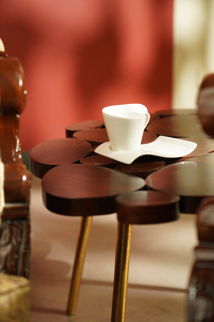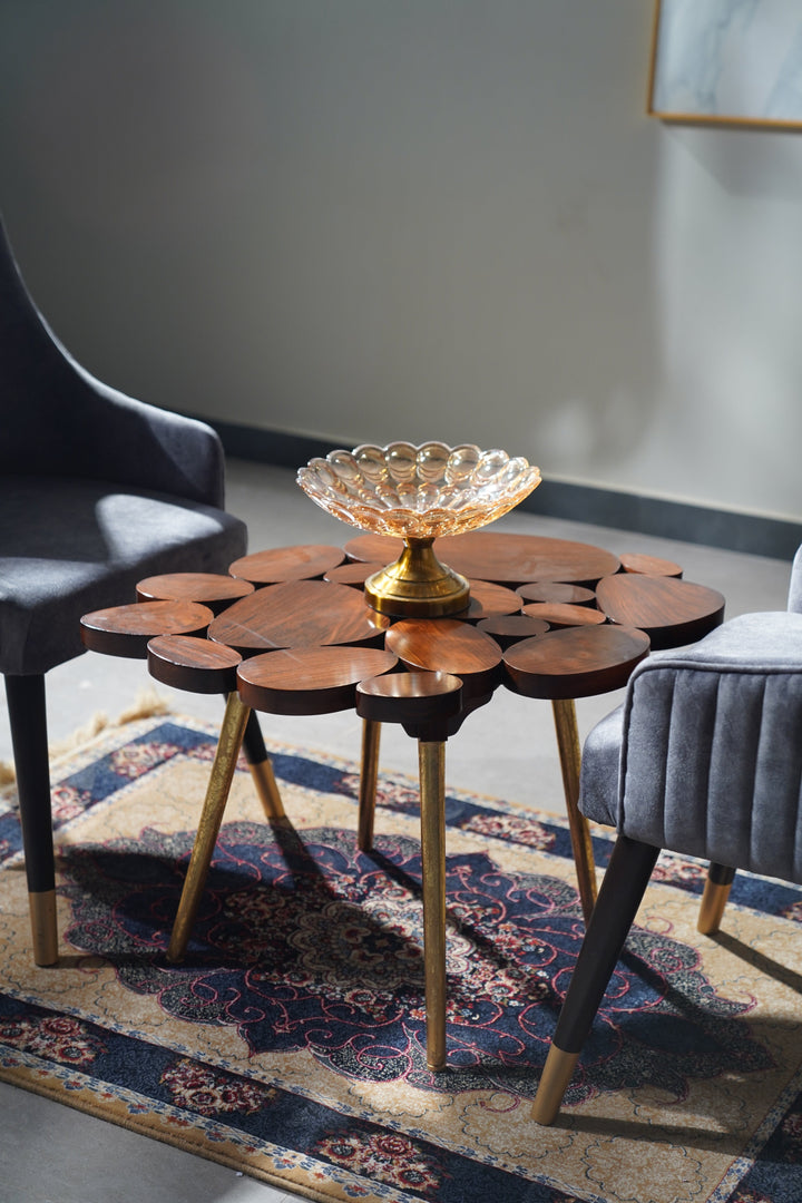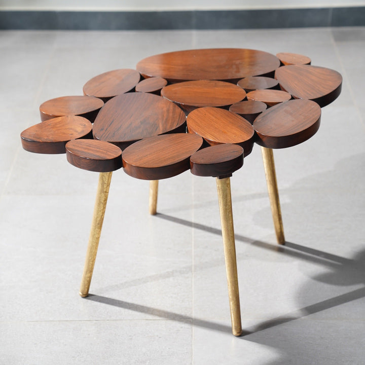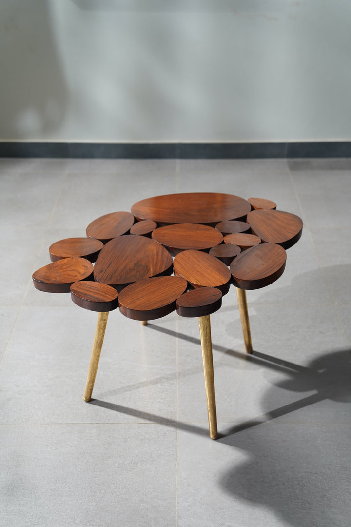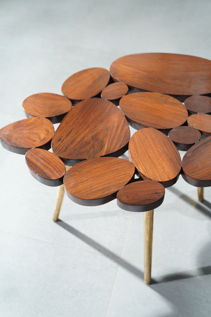 The organic design of the table showcases the natural beauty of the wood, with its intricate details and textures that are preserved to enhance the overall aesthetics of the piece. The bubbly pattern on the surface of the table is a tribute to the wondrous shapes created by nature.