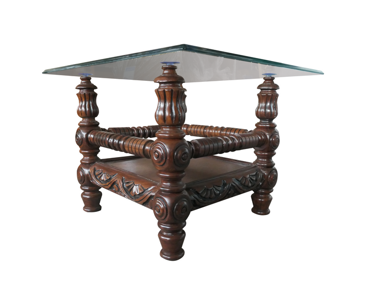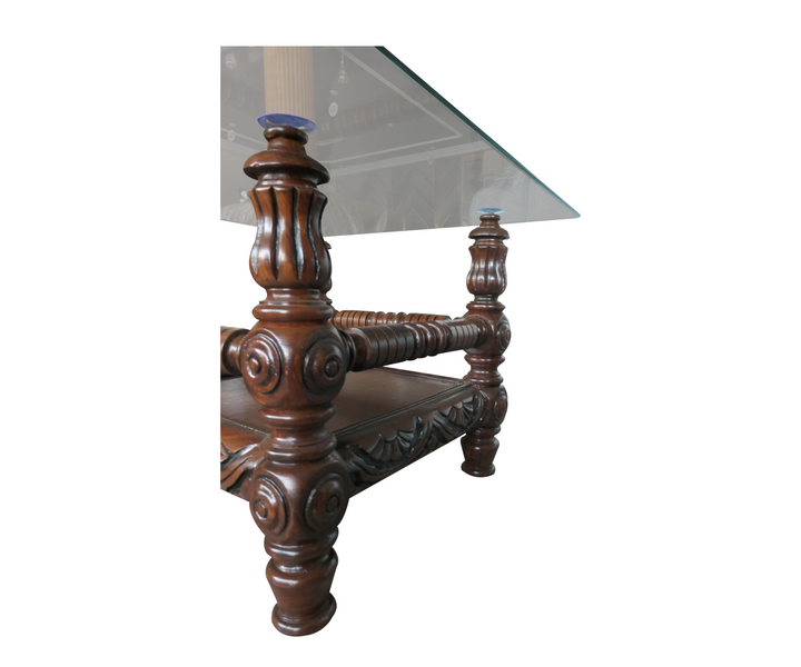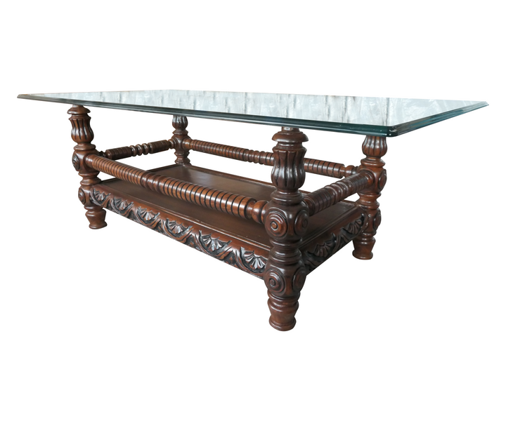this wooden table with extensible top is all about smooth curves and bright, fancy decorations. The seductive profile of the cabriole legs and the top's lower one are accented with luminous carved decorations.