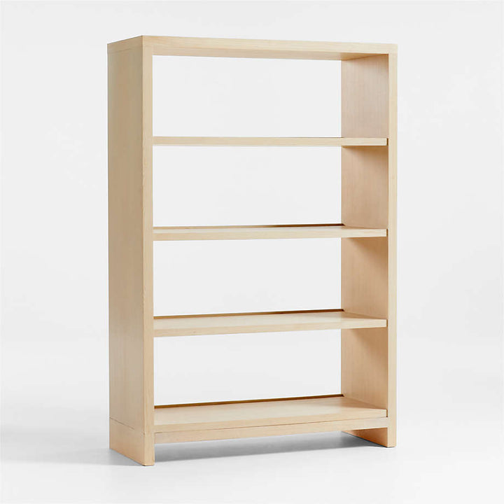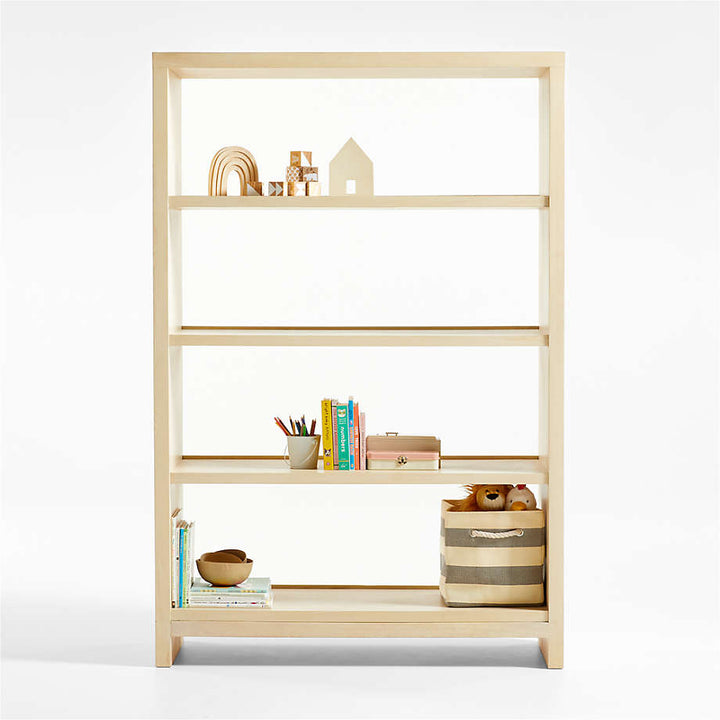 The open, airy design highlights the creamy ash veneer and provides plenty of space for favorite bedtime books, treasured keepsakes, bins of beloved stuffed animals and that perfect acorn they just had to bring home.