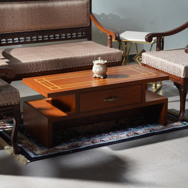 Introducing our sleek and functional compact center table that comes with a built-in drawer, perfect for modern homes and small spaces. Crafted from high-quality materials, this center table is designed to provide both style and functionality. The unique design features a smooth and sturdy surface that can be used for placing drinks, books, or decorative items, while the built-in drawer provides ample storage space for your essentials. The compact size of this center table makes it an ideal choice for apartments, condos, or any living space with limited area. Its minimalist design and neutral finish make it easy to blend with any existing decor, and the durable construction ensures long-lasting use. Add this stylish and practical center table to your home to create a welcoming and functional space.