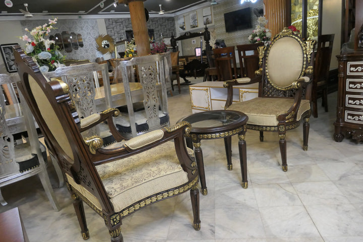 Therefore, Pakistan Furniture and Interiors designs ultimate fashion meeting furniture products. Thus, this Chair set with table for bedroom style is an exclusive category. Specially designed to make your bedroom elegant and attractive.