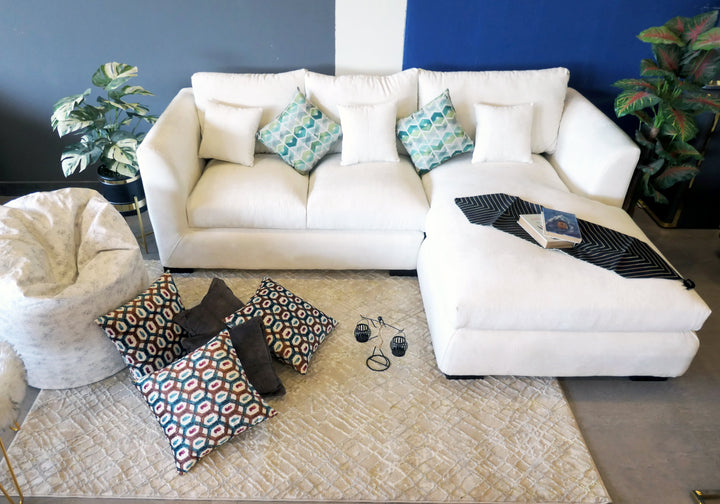 Introducing the ultimate in comfort and style: our luxurious corner sofa upholstered in the softest imported fabric you've ever felt! Sink into the finest cushioning and let your worries fade away as you relax in pure luxury.