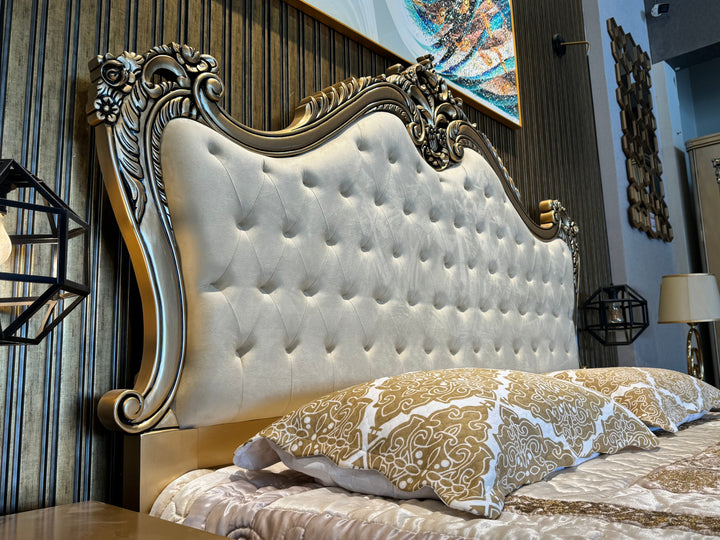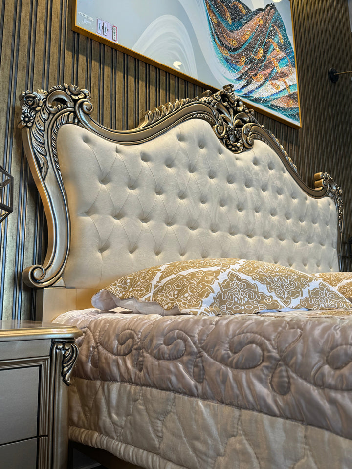 The Victoria Royale Bed, adorned with intricate detailing and featuring a majestic, hand-carved headboard, beckons you to experience the grandeur of classic design. Every curve and flourish speaks to the unparalleled craftsmanship that defines this regal masterpiece.